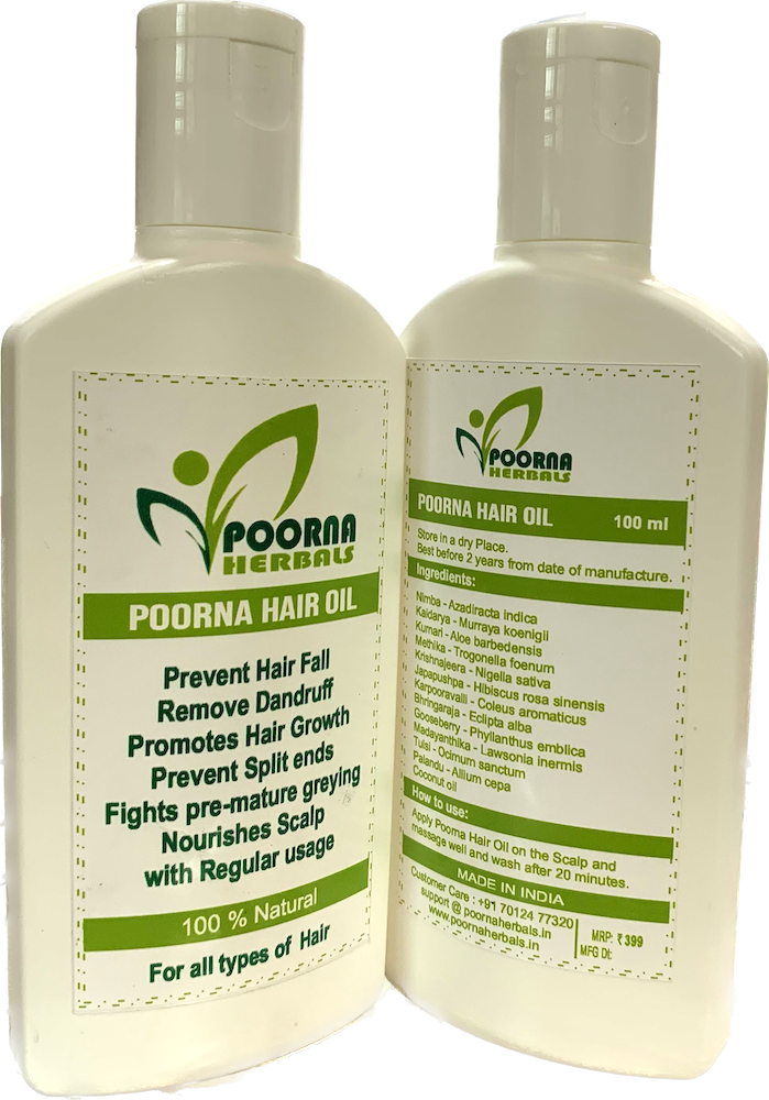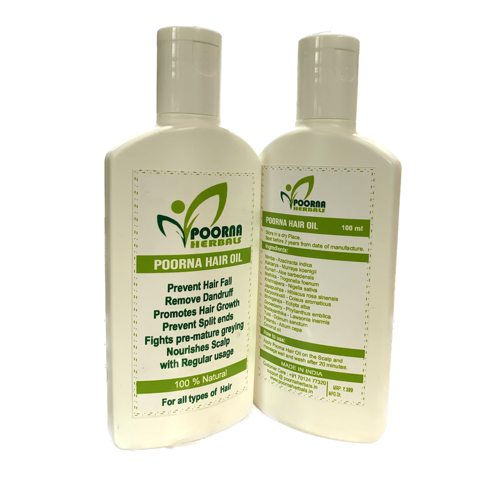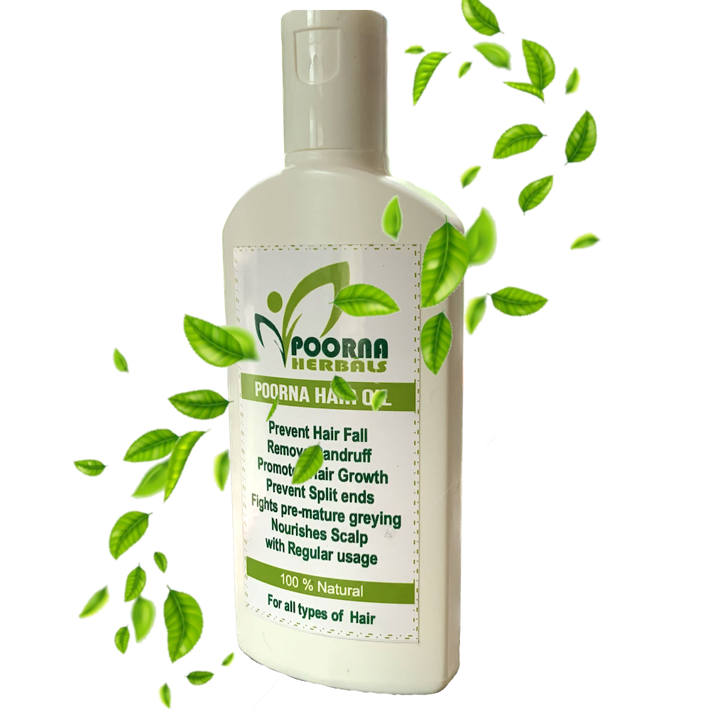 Poorna herbal hair oil is a nourishing and revitalizing product derived from natural plant-based ingredients.